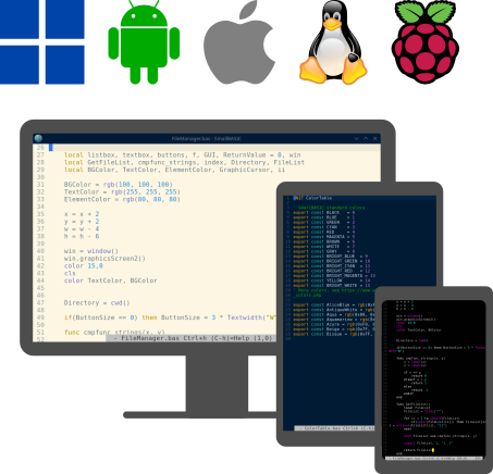 SmallBASIC makes it easy to bundle your program with all the necessary libraries, creating executable files for Windows (exe-files) or Linux (AppImage). For Android, you can create a signed package (pkg) and distribute it through platforms like Google Play. Learn more about distributing your program on our (Distribution) page.