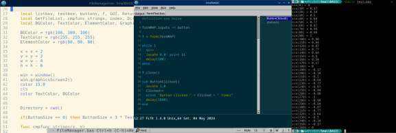 SmallBASIC comes in three different flavors for the desktop. The SDL version offers a simple but efficient IDE and is perfect for working with graphics. The FLTK version has a great IDE. The console version doesn’t offer an IDE and is text-only but works perfect with plugins like raylib or nuklear (Downloads).