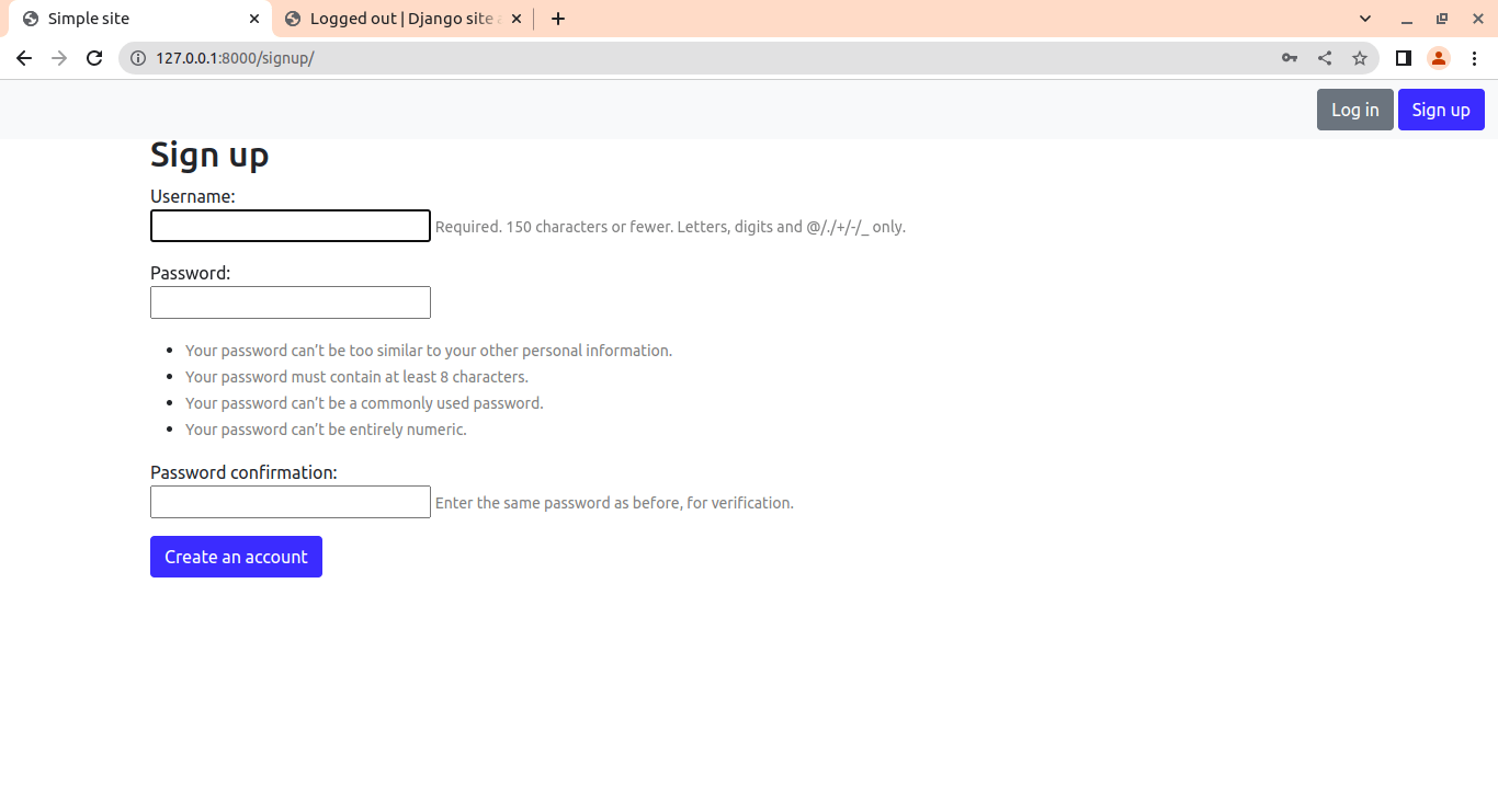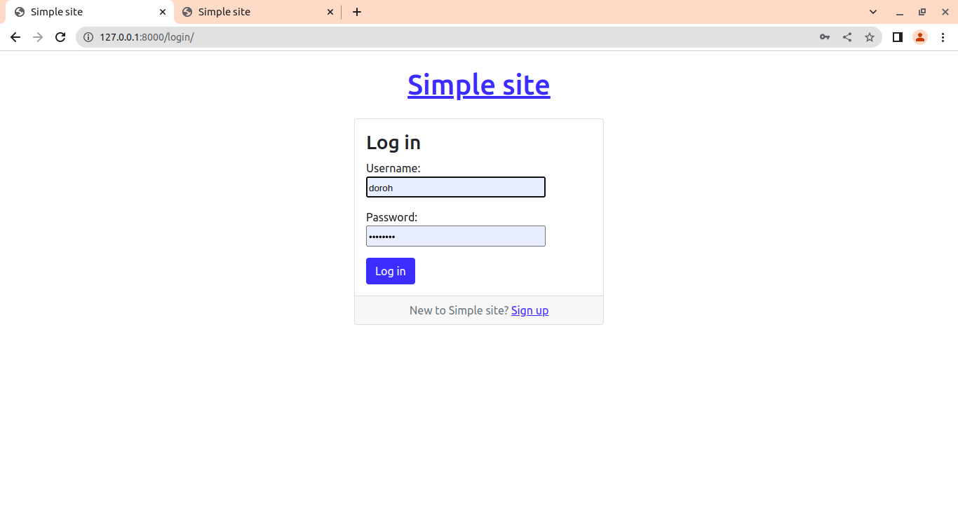 New to Simple site? <a href="{% url 'signup' %}">Sign up</a>
