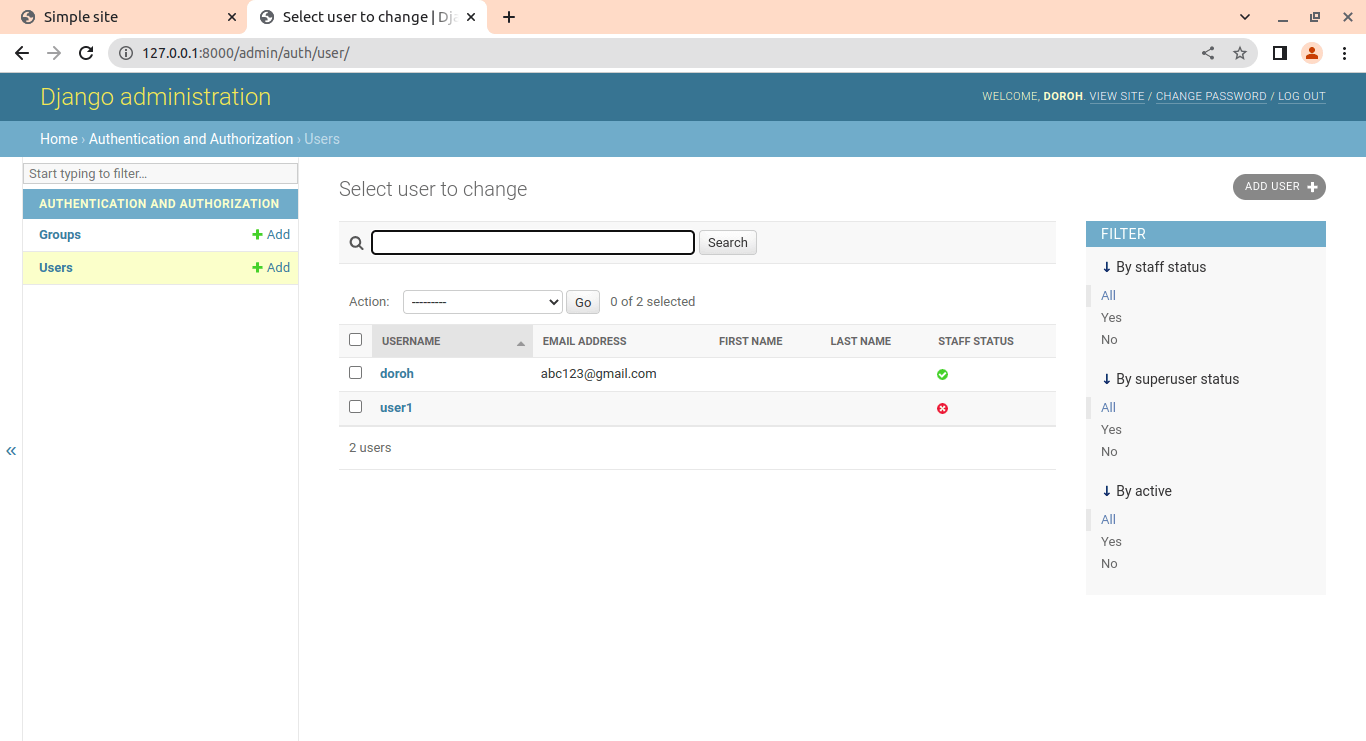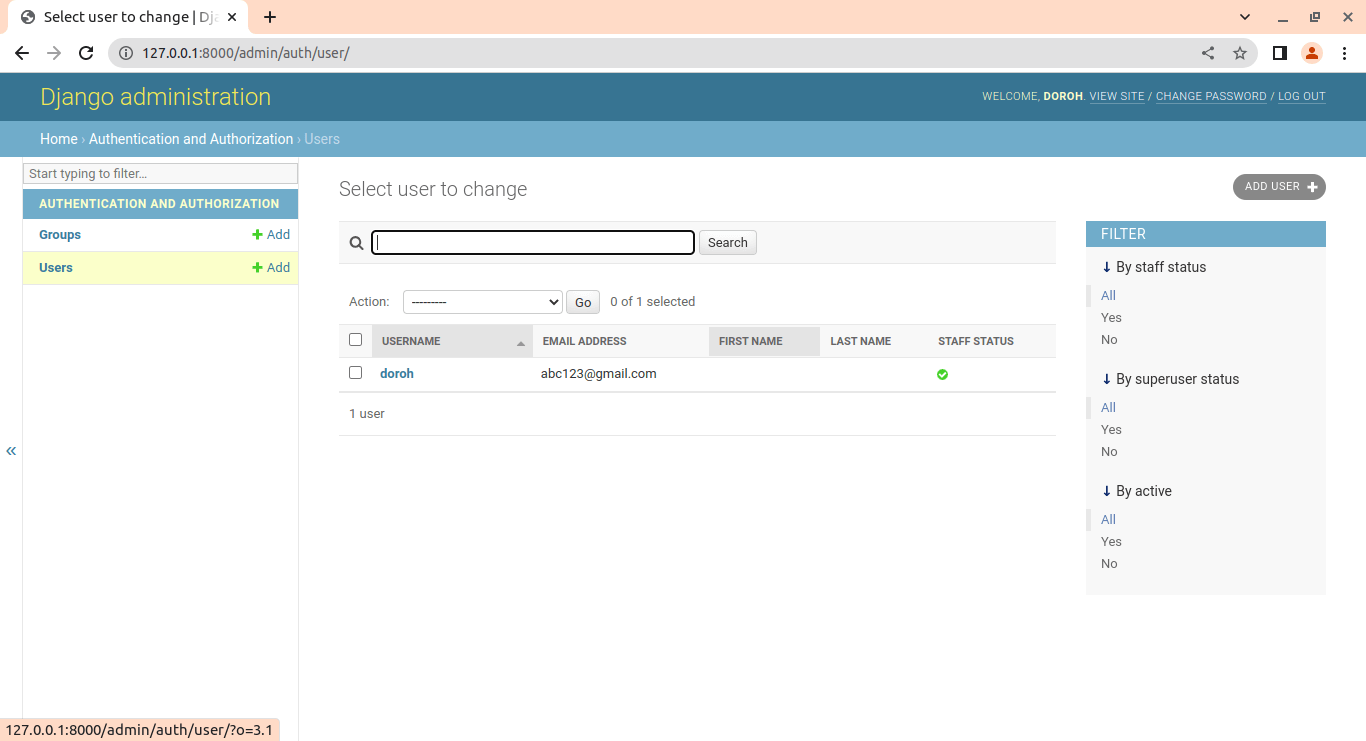 After filling out the details, it redirects us to the homepage, with our new name updated. To confirm the signed users, let's access the admin interface.