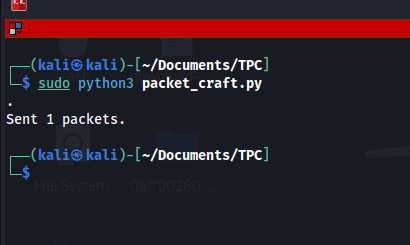 Now that we’ve created a packet, let’s send it to the network. Please make sure to run it as root. As the root user is privileged to send a packet: