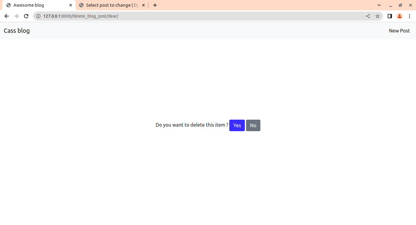 Clicking on the delete post button should take us to confirm if we want to delete it: