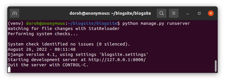 You should see a link to the development server. Open the link http://127.0.0.1:8000/ in your web browser. Congratulations! You have successfully created a Django project.