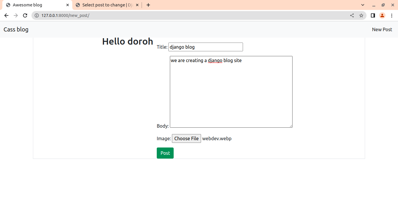 <form action="/new_post/" enctype="multipart/form-data" method="POST"> {% csrf_token %}