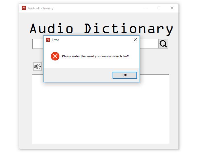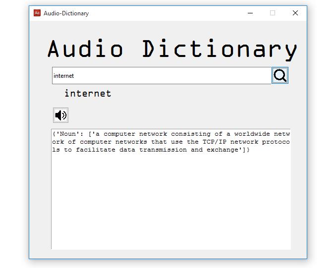 Now run the program search for a word and try clicking the audio button, you will hear the word being pronounced audibly.