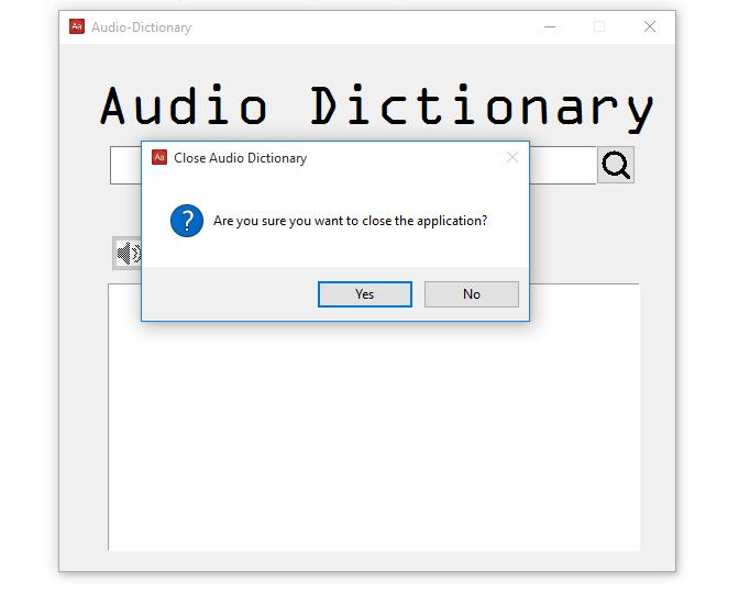 if askyesno(title='Close Audio Dictionary', message='Are you sure you want to close the application?'):